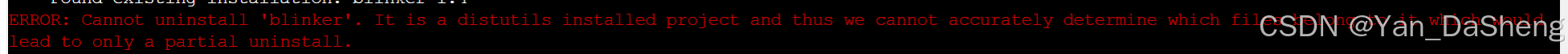错误信息:ERROR: Cannot uninstall 'blinker'. It is a distutils installed project and thus we cannot accurately determine which files belong to it which would lead to only a partial uninstall.