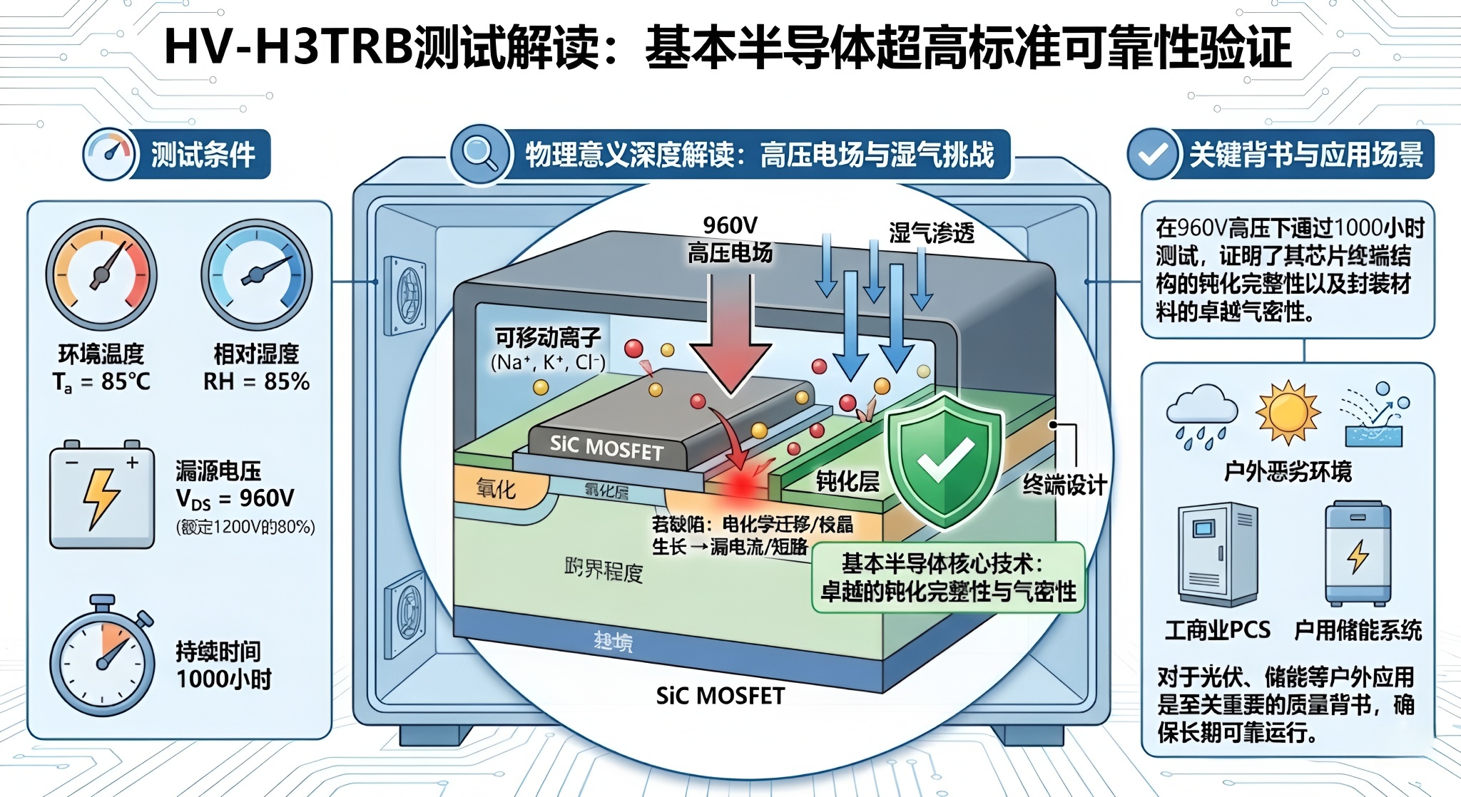 基本半导体执行了远超行业标准的**高压高温高湿反偏(HV-H3TRB)**测试 。