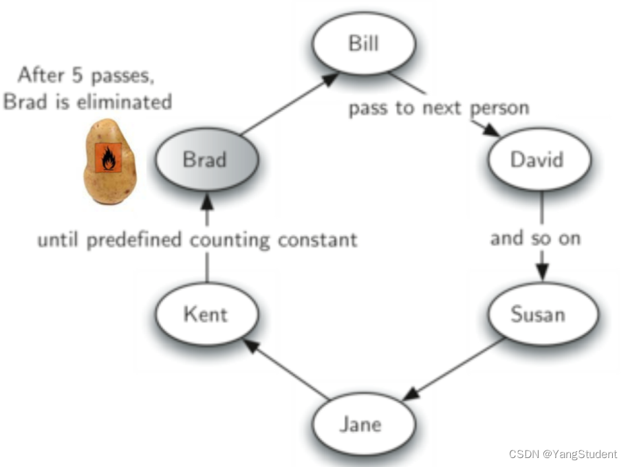 - dequeue():从队首移除数据项,返回值为队首数据项,队列被修改;即出队
