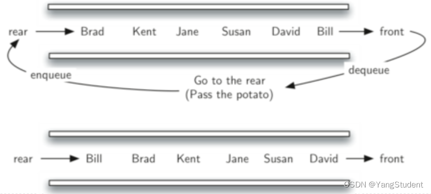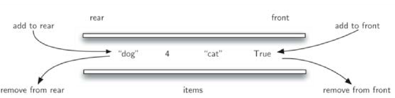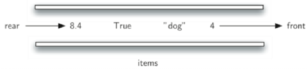 - 而现存数据项的移除总发生在另一端(通常称为“首front”端)