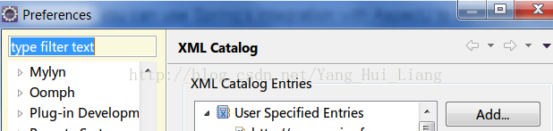 2.打开Eclipse的XML Catalog,点击Add