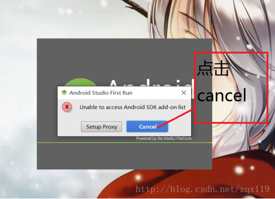 安好之后运行,会提示我们没有安装SDK,这里点击取消