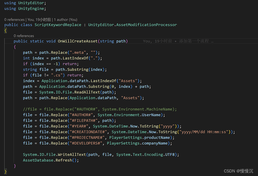 3.关键字替换,根据81-C#里面的关键字进行替换:继承UnityEditor.AssetModificationProcessor