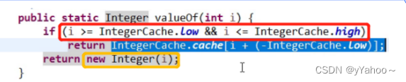 Integer的valueOf方法当中,存储一个cache数组,该数组相当于一个缓存,范围再-128~127闭区间,当在该范围中进行自动装箱的时候,直接返回该值的内存地址(即cache数组的地址),所以在-128~127之间的数值用 == 进行比较时结果是相等(true),而不在该区间的数,需要开辟一个新的内存空间,此时地址就不相同了,所以不相等。
