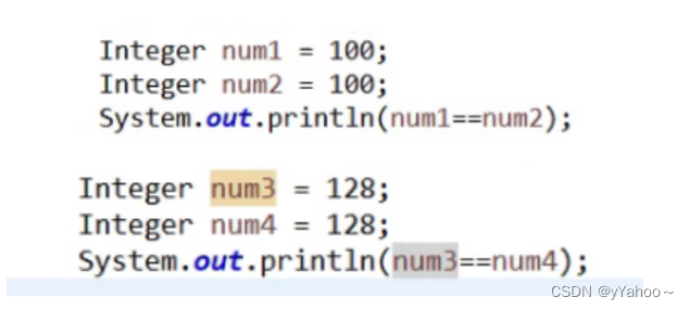 使用Integer类时,如果值的范围在127以上或-128以下时,即便两个对象值相同,但是使用“==”比较时,返回的是false。