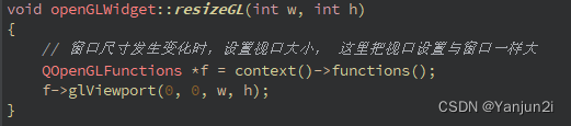 QOpenGLFunctions* f = context()->functions();:这行代码获取了与 OpenGL 上下文相关的函数指针