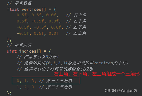 // 此例的索引(0,1,2,3)就是顶点数组vertices的下标,