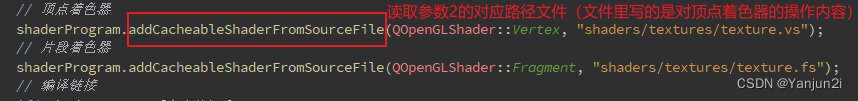 shaderProgram.addCacheableShaderFromSourceCode(QOpenGLShader::Vertex, R"(