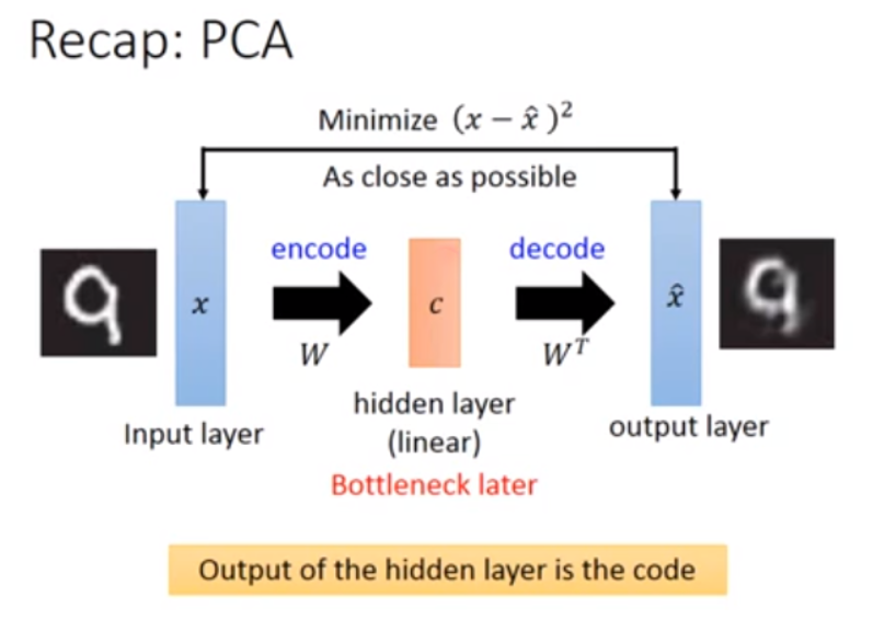 中间压缩了维度的隐藏层叫做bottleneck layer(像颈部一样比较细),两边的权重通常互为转置(可以减少参数量,但不是必须这样的)。