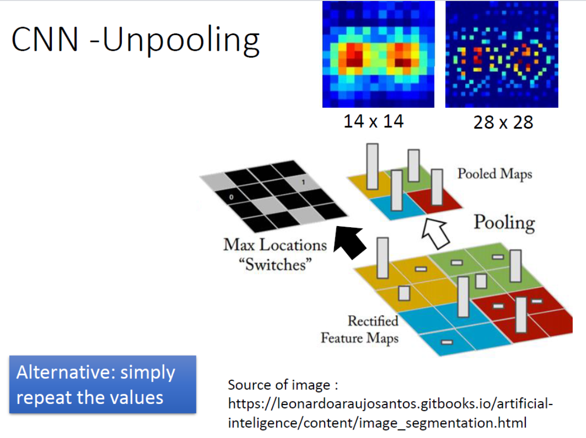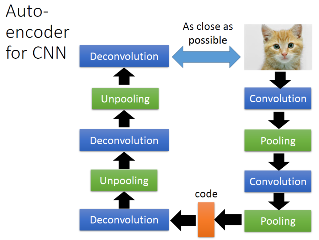 用CNN自编码器的话,就是在decoder这边做deconvolution和unpooling的操作。