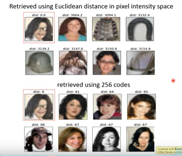 对于图像搜索,同样,计算像素之间的相似度的话,得到的结果会很糟糕。而用自编码器的话,结果还不错。