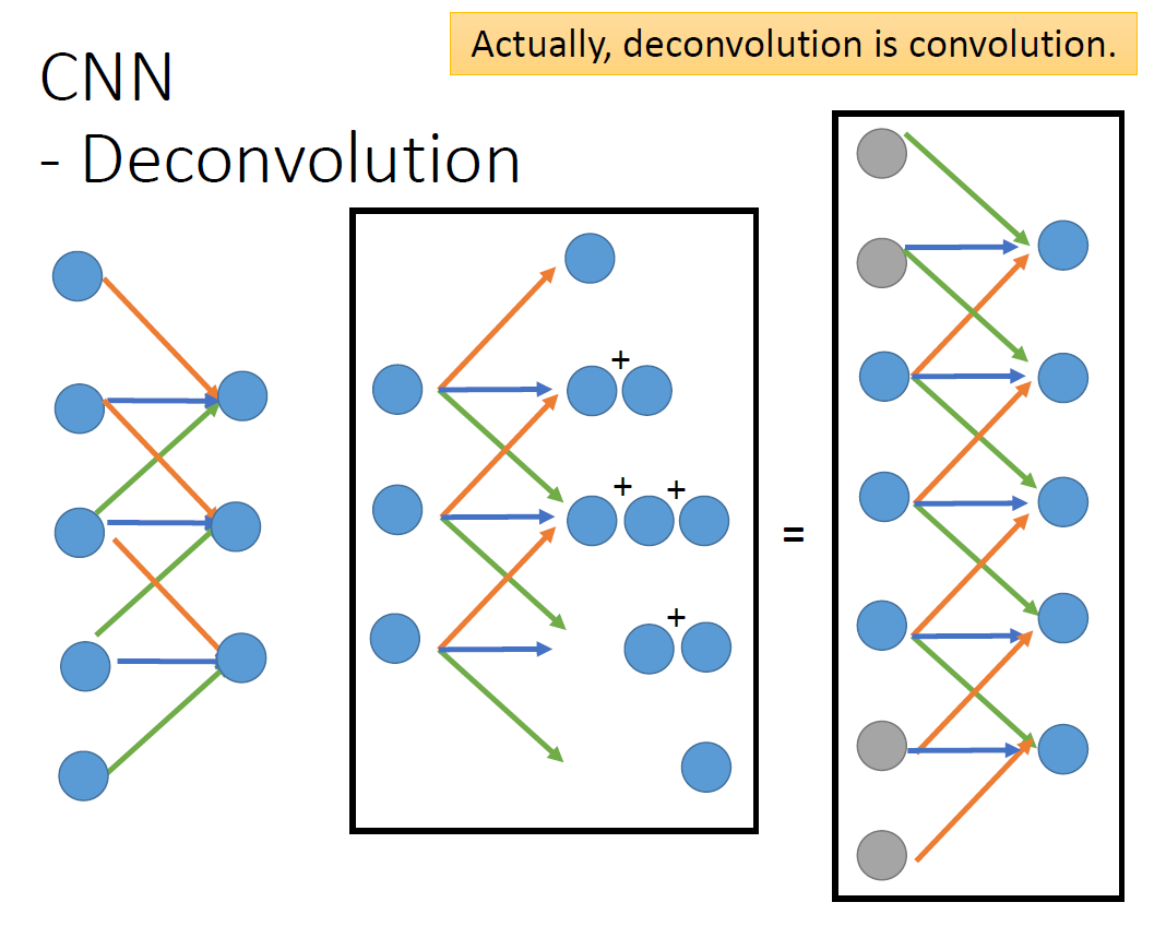 反卷积:反卷积和卷积是一样的操作。在旁边补一些0,就可以实现。