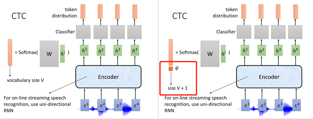 但有时候当前的语音输入可能并不能对应实际的文本token,所以预测要额外多一个为空的类别,表示模型不知道要输出什么。