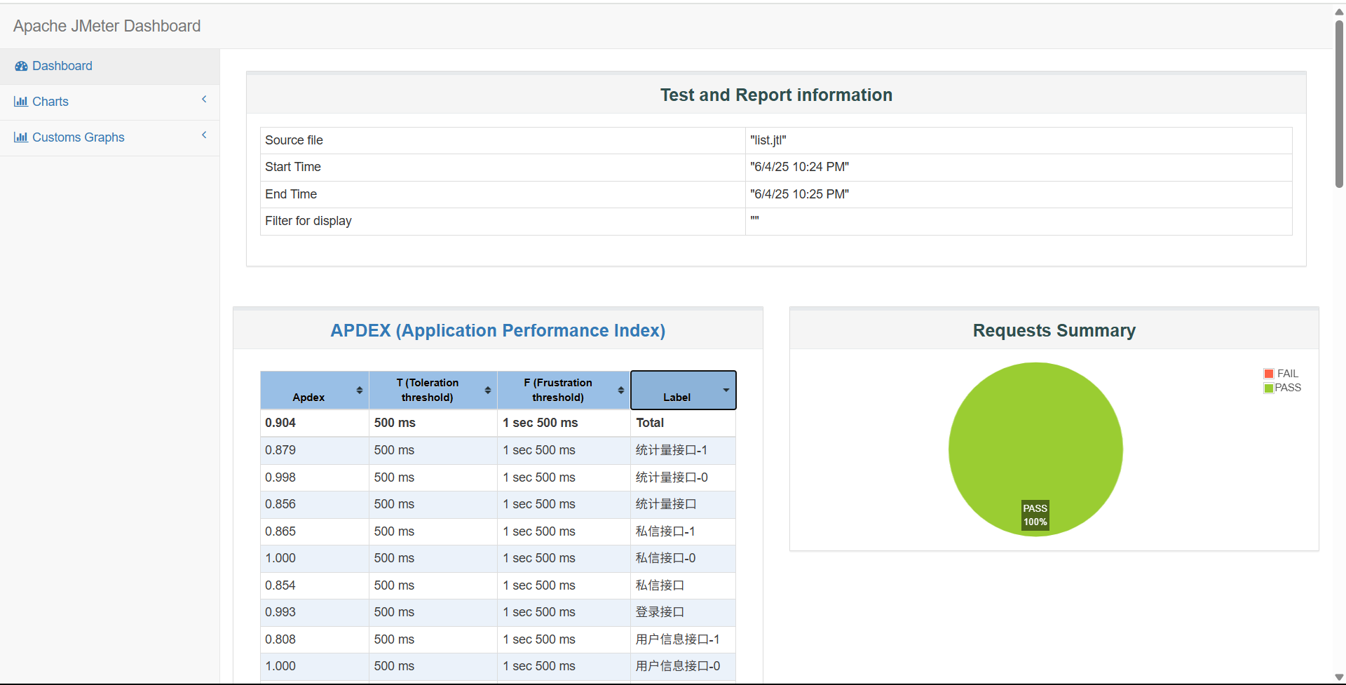 响应时间监听器结果: