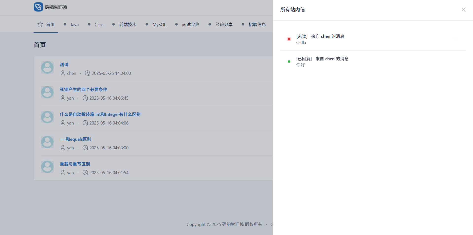 站内信已读为绿色,未读为红色