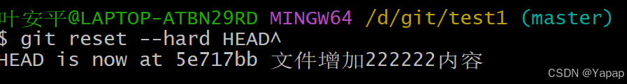使用 git reset --hard HEAD^