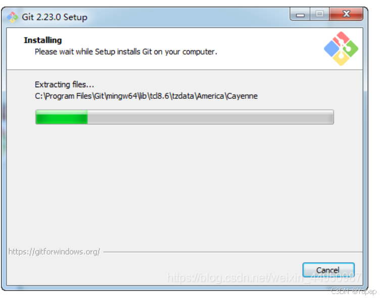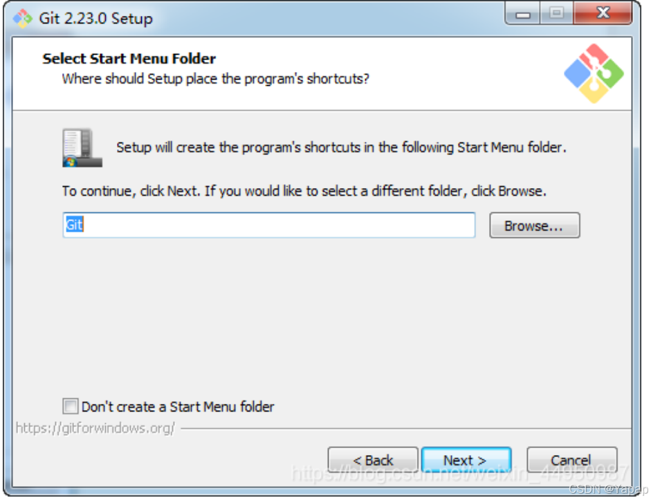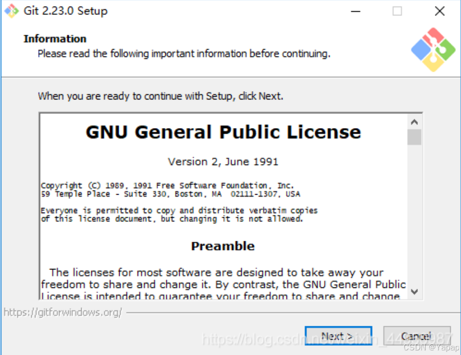 Git 客户端安装过程 1、双击安装程序“Git-2.23.0-64-bit.exe”,显示截图如下: