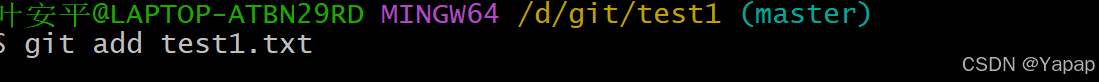 接下来尝试将文件存入暂存区 使用 git add test1.txt 进行初步提交
