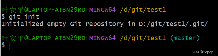 (1)通过命令 git init 把这个目录变成 git 可以管理的仓库,如下: