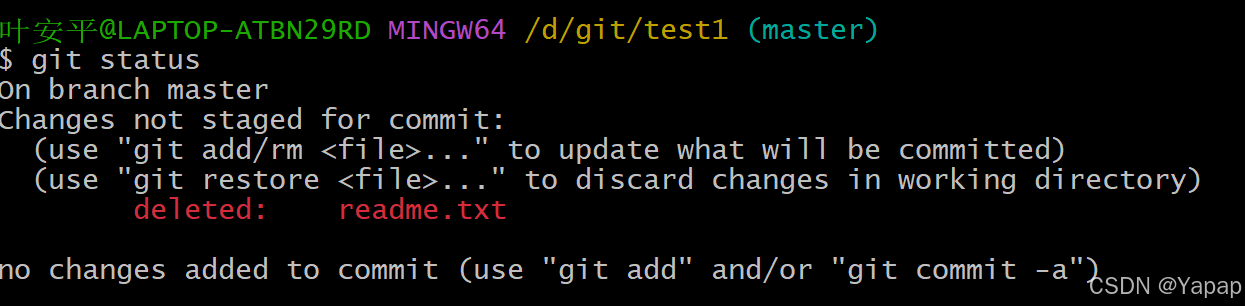 此时我的git将退回至上一次提交状态