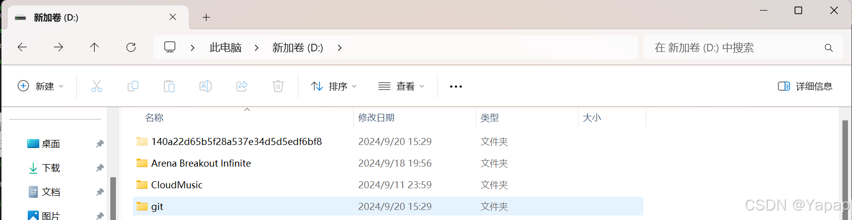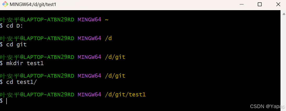 所以创建一个版本库也非常简单,如下我是 D 盘 –> git目录下新建一个