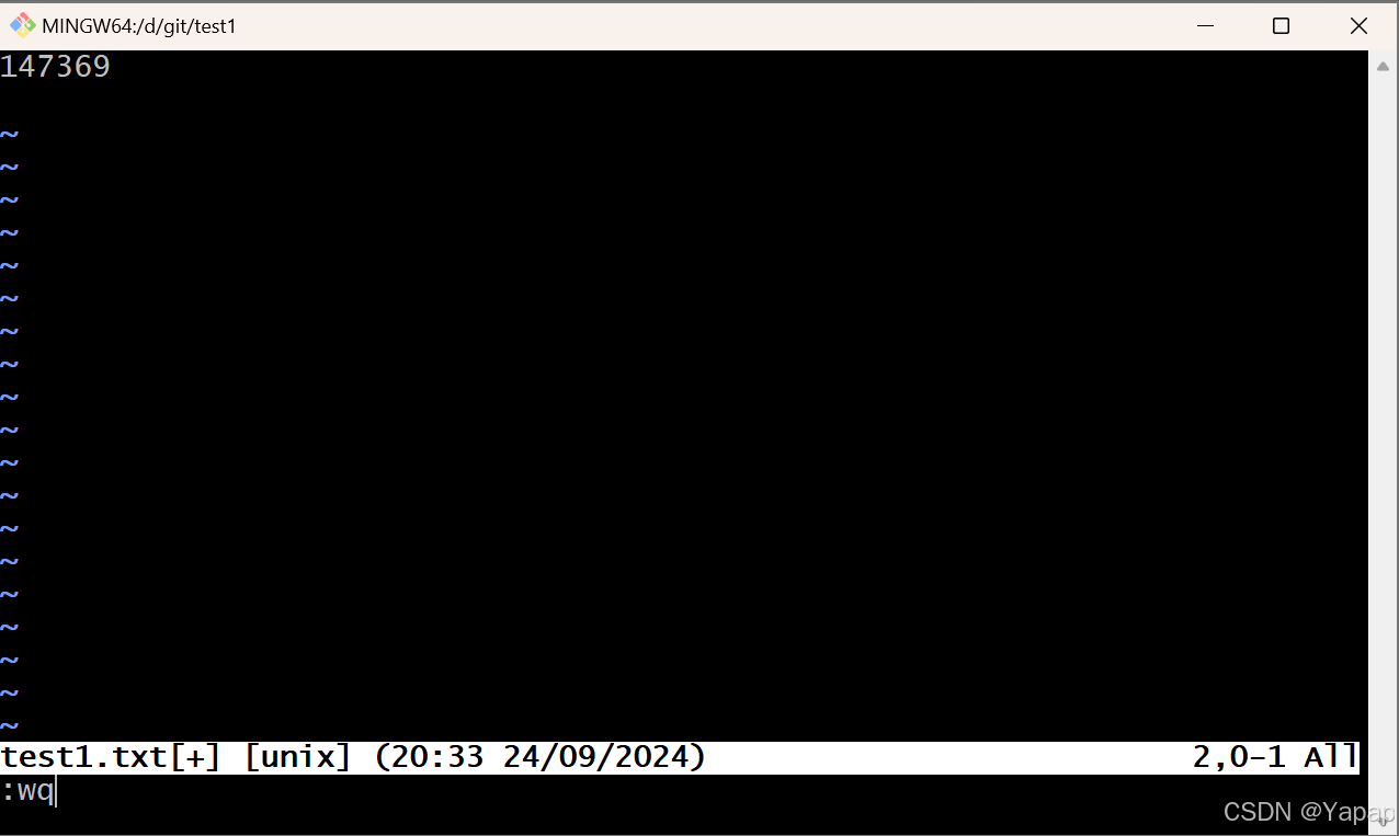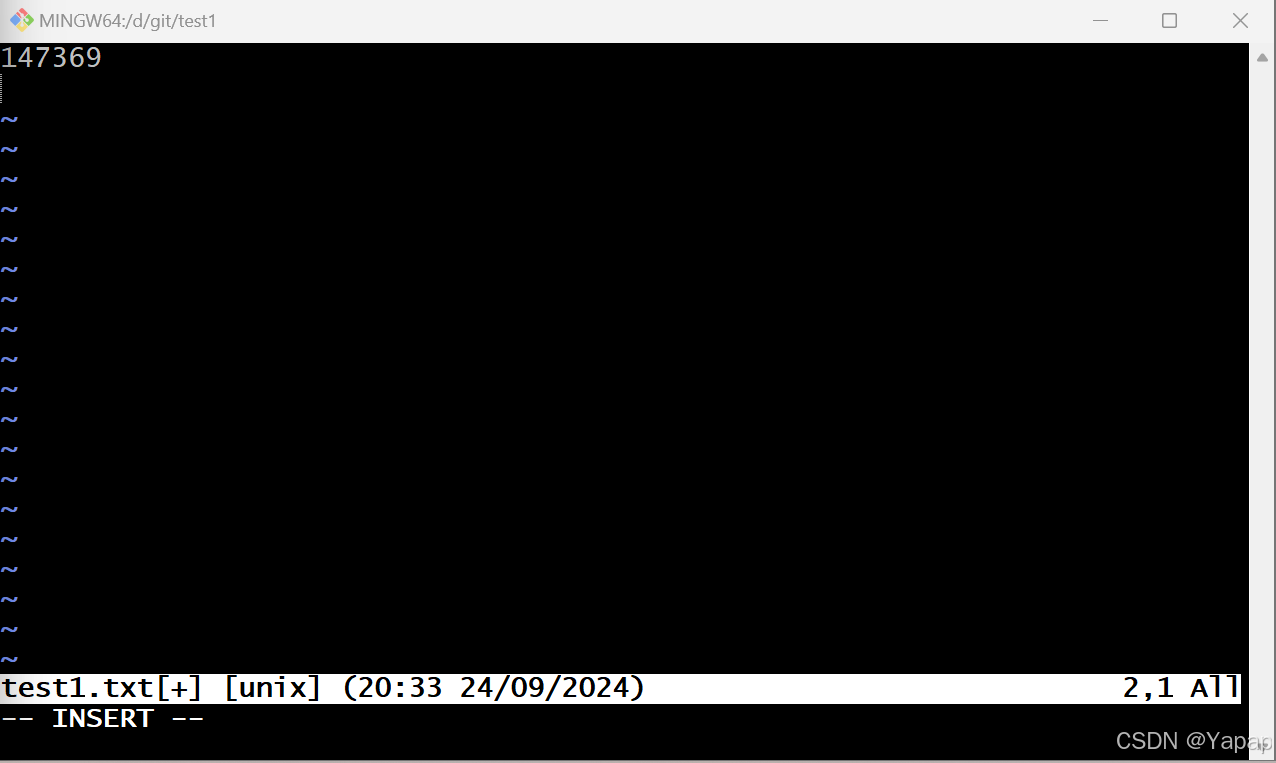 在master状态下输入 vim test1.txt