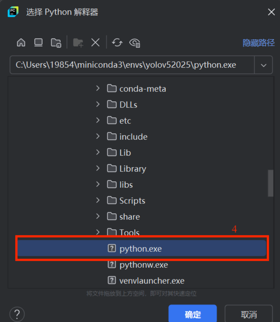 再点击确定(新创建时箭头位置应显示“无解释器”)
