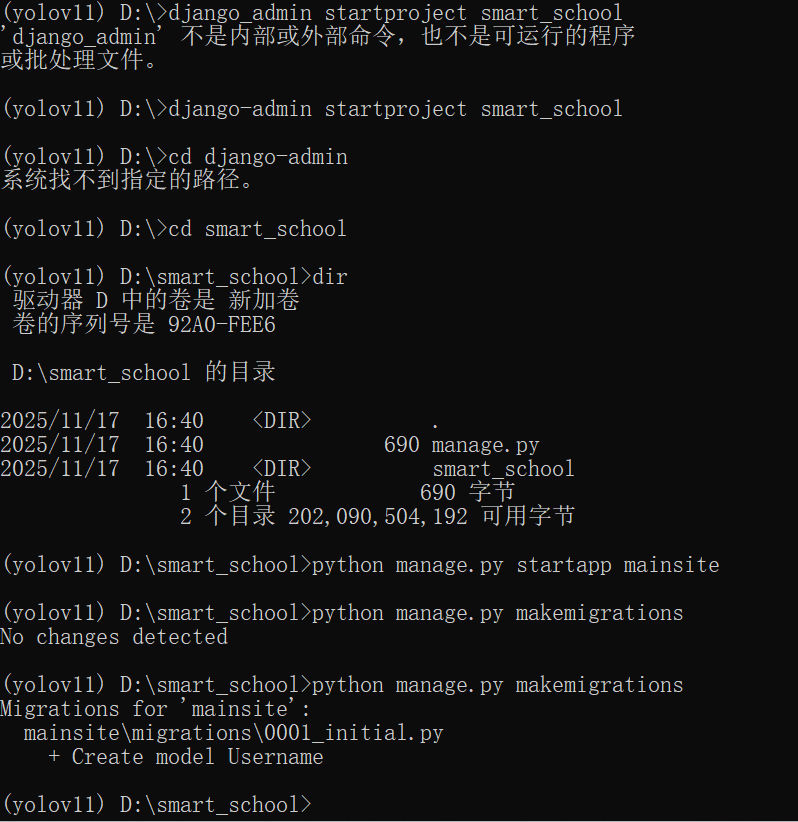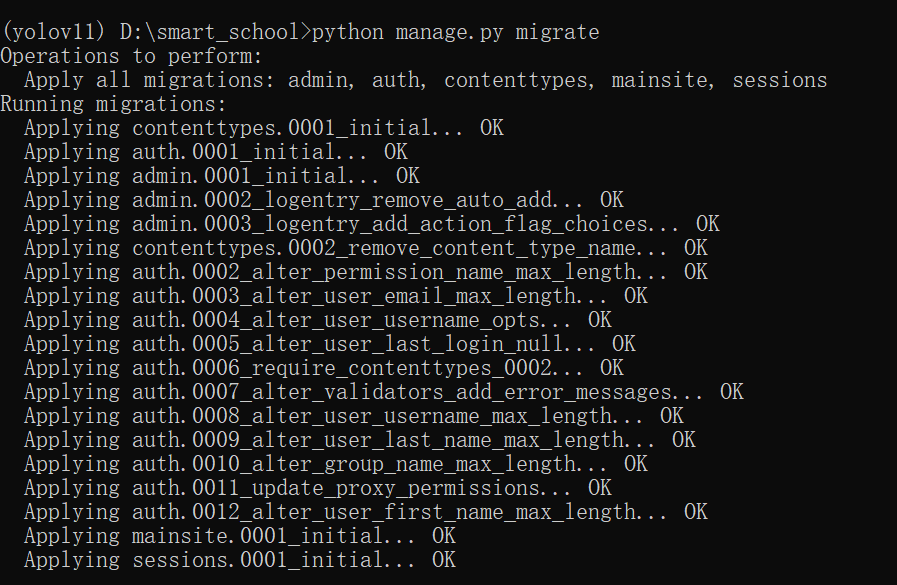 在开启一个命令提示符输入 python manage. py migrate