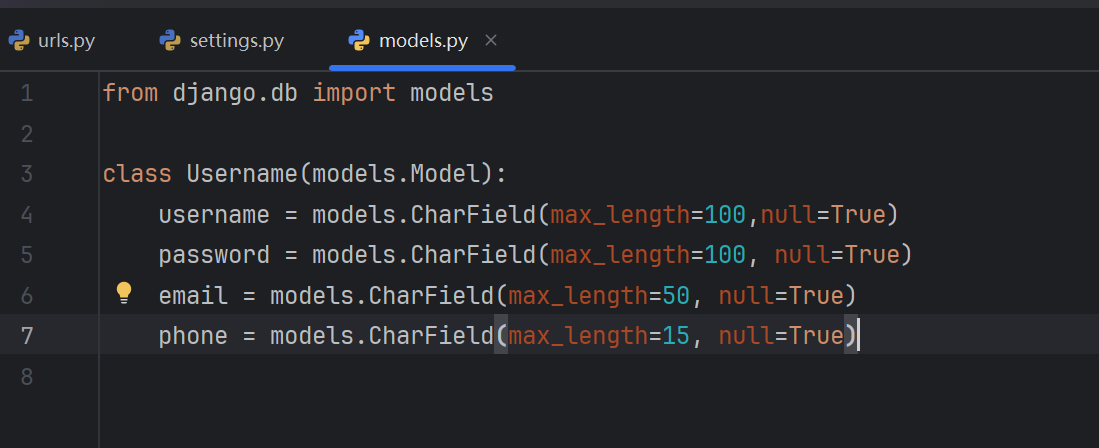 打开pycharm 中的models.py 修改内容如下