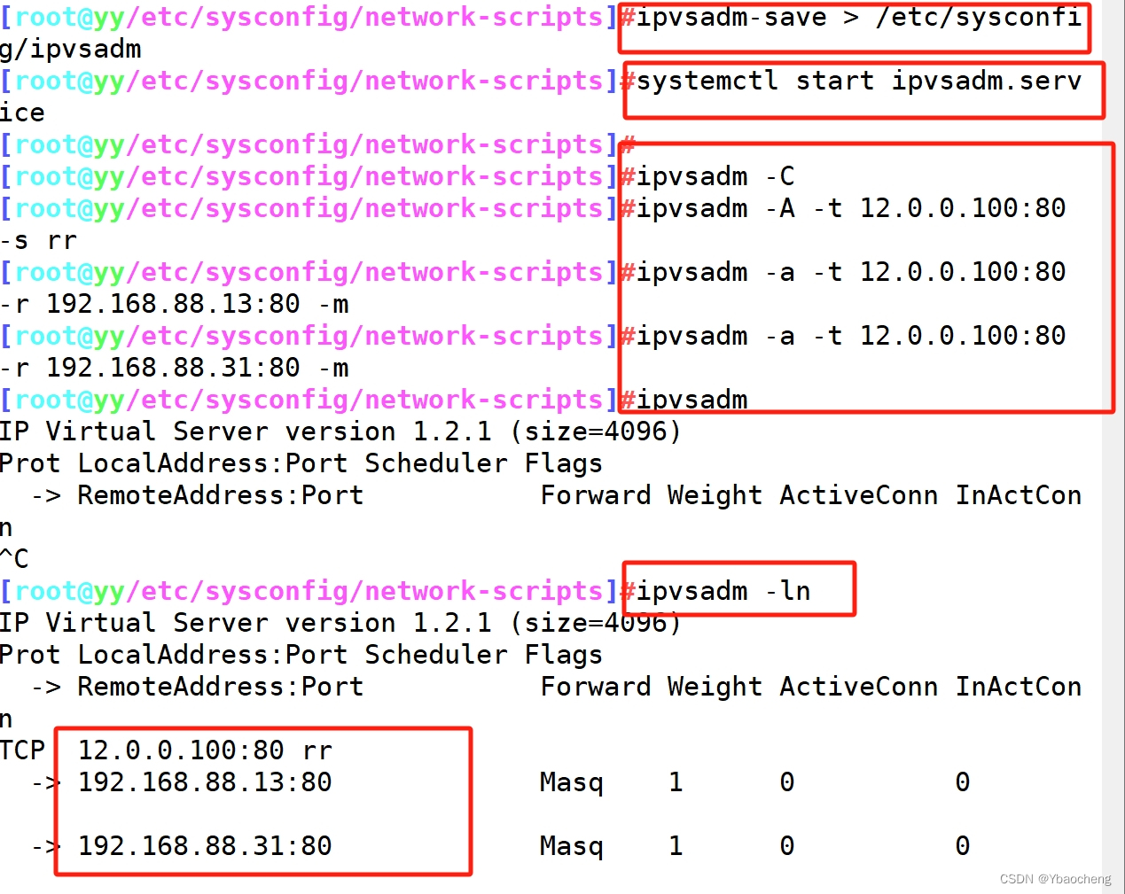 ipvsadm-save > /etc/sysconfig/ipvsadm #启动服务前须保存负载分配策略