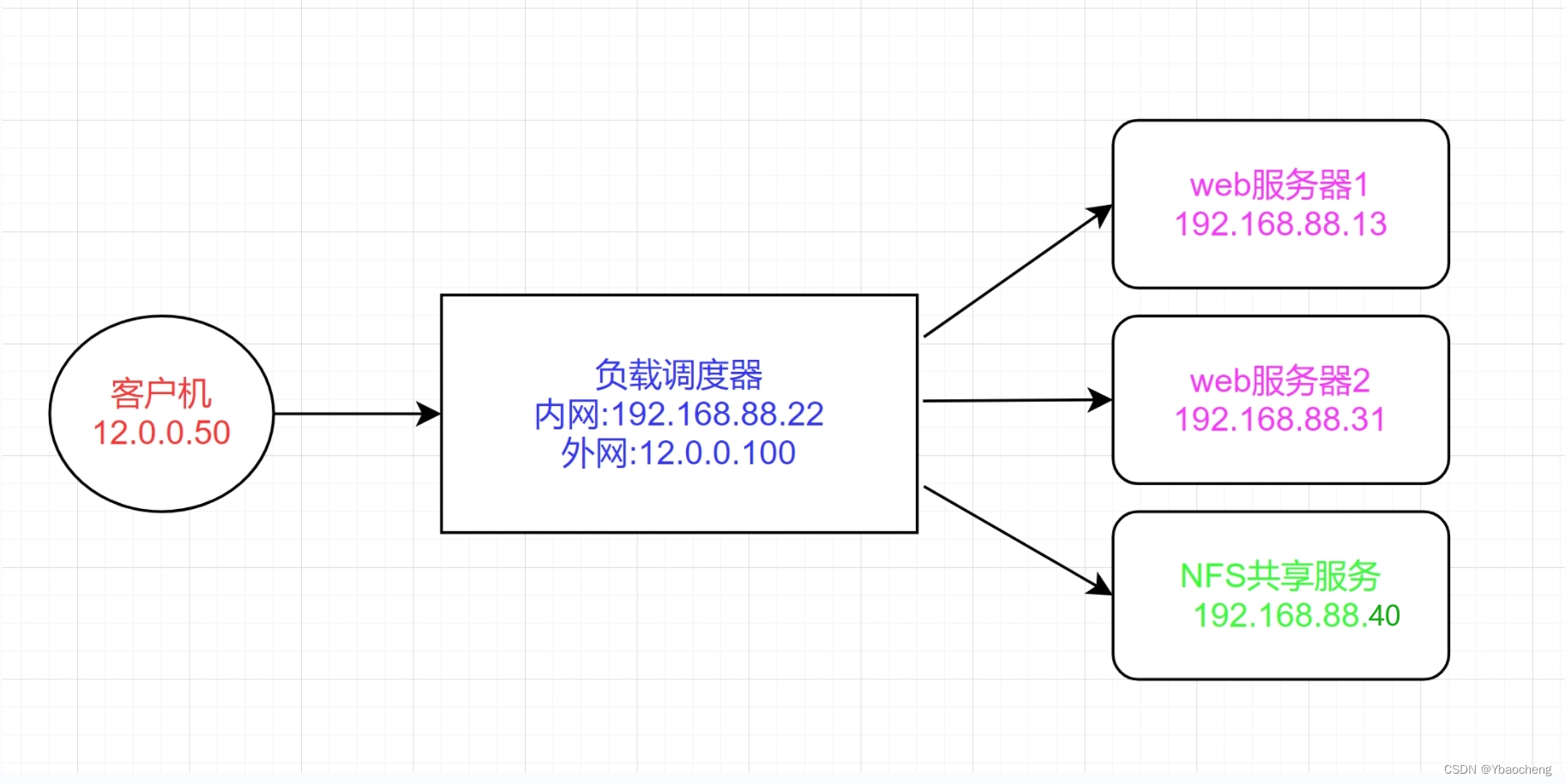- 调度器会作为所有节点服务器的默认网关,也是客户端的访问入口和节点服务器返回响应消息出口,所以调度器会承载双向流量的负载压力,可能会为整个群集的性能瓶颈。由于节点服务器都会处于内网环境,使用私网IP,所以具有一点的安全行。