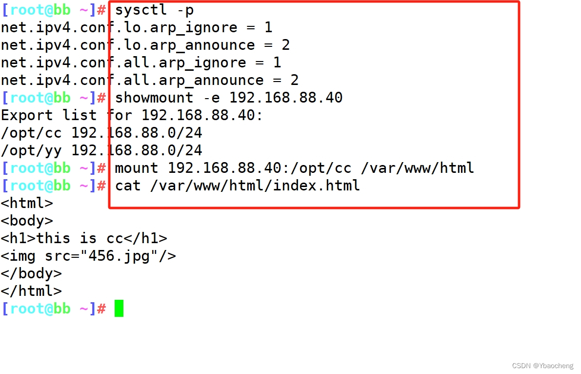 mount 192.168.88.40:/opt/yy /var/www/html
