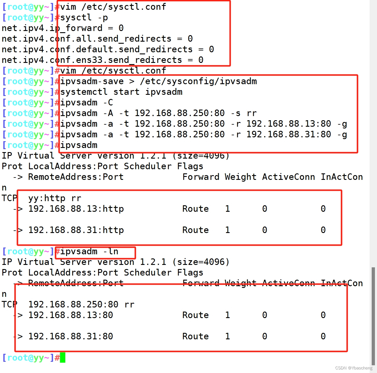 ipvsadm -A -t 192.168.88.250:80 -s rr