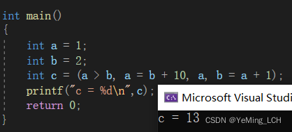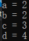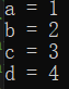int main() { int i = 0, a = 0, b = 2, c = 3, d = 4; i = a++ && ++b && d++; //(1) printf("a = %d\nb = %d\nc = %d\nd = %d\n", a, b, c, d); return 0; }思考一下,上面这个程序输出结果是多少?