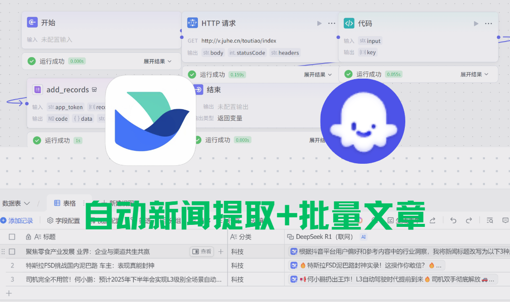 想象一下, 每天早上,热腾腾的最新科技新闻自动汇总到你的飞书多维表格, 标题、分类、链接,一目了然! 更惊喜的是,还能 一键文案改写, 热点素材+爆款文案,简直不要太爽! 这,就是 Coze + 聚合数据 API + 飞书多维表格 联手打造的 自动化神级工作流!