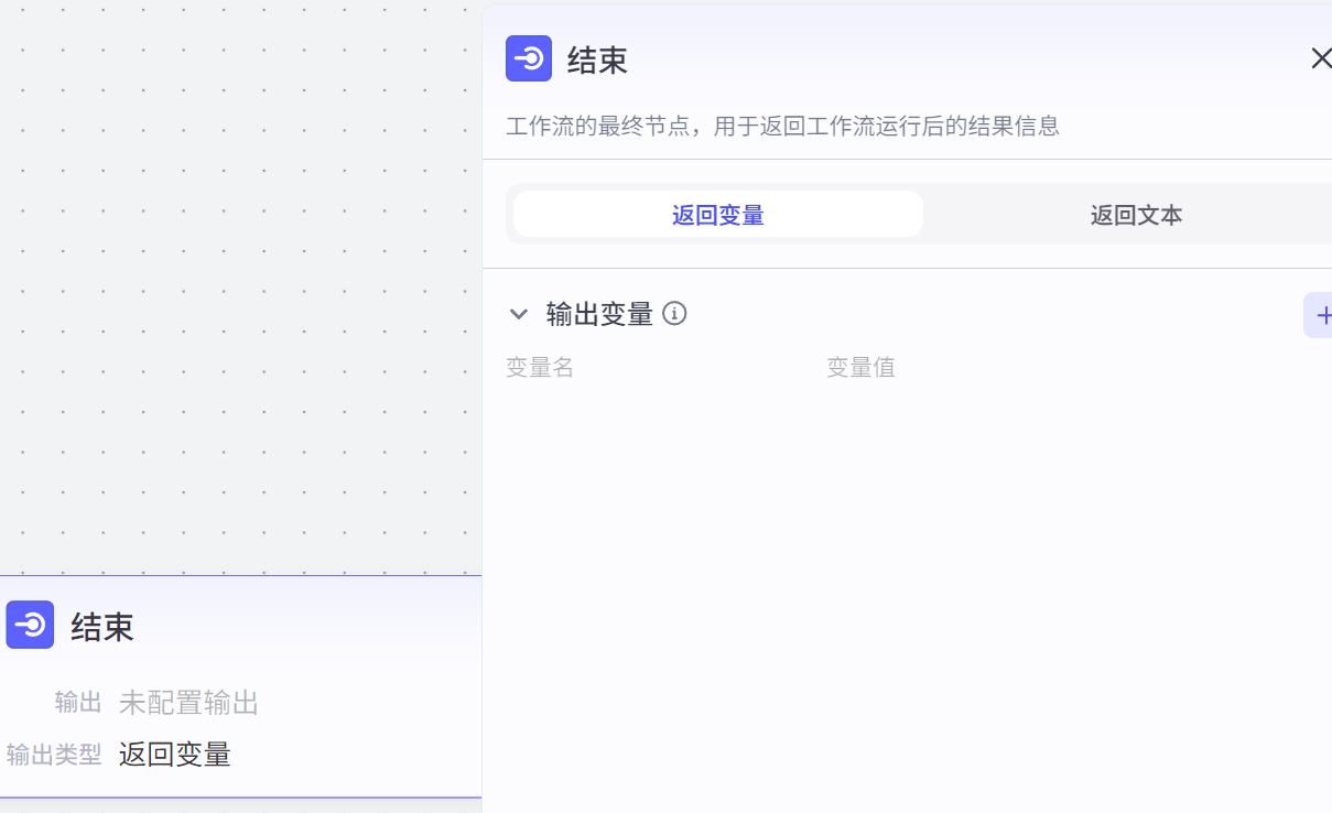 最后的输出节点可以把输出变量都删除了,因为我们的输出放到飞书多维表格了不需要在扣子上做多余输出