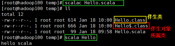 源文件进行编译后,默认生成两个字节码文件:伴生类和伴生对象所属类
