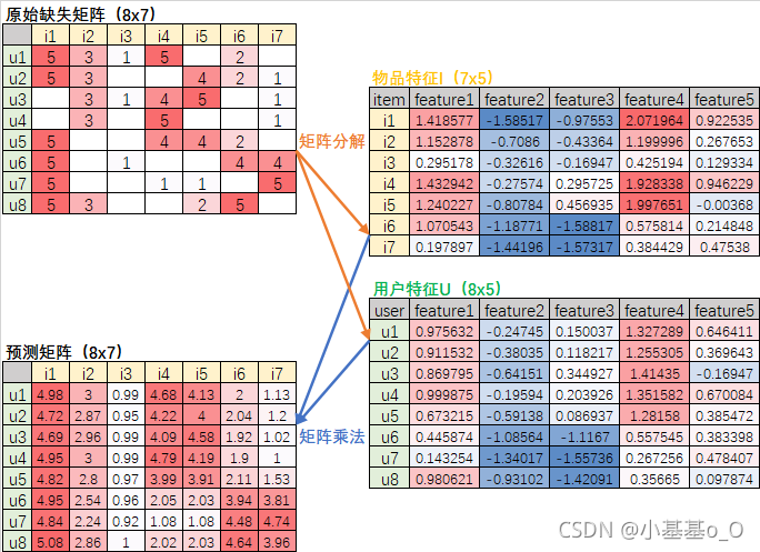 然后两个小矩阵相乘,就可以估算出稀疏矩阵缺失的值