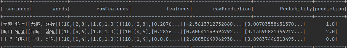 Seq("无感 还行", "呵呵 渣渣", "干货 好味").toDF("sentence")