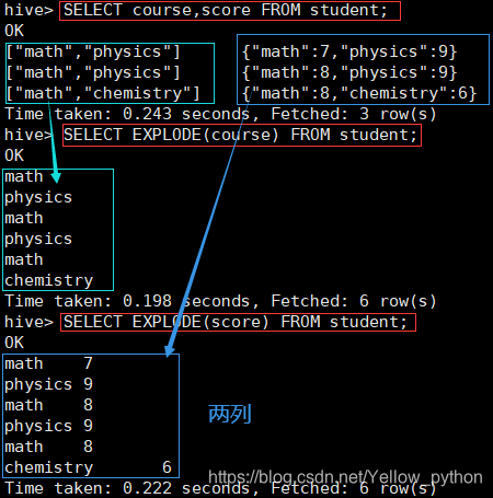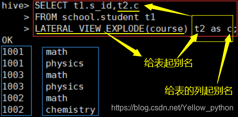 LATERAL VIEW EXPLODE(course) t2 as c;