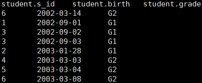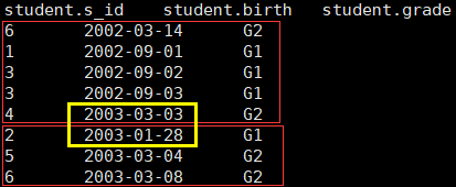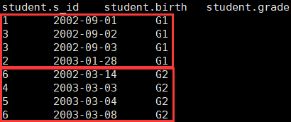 SELECT * FROM student DISTRIBUTE BY grade SORT BY birth;