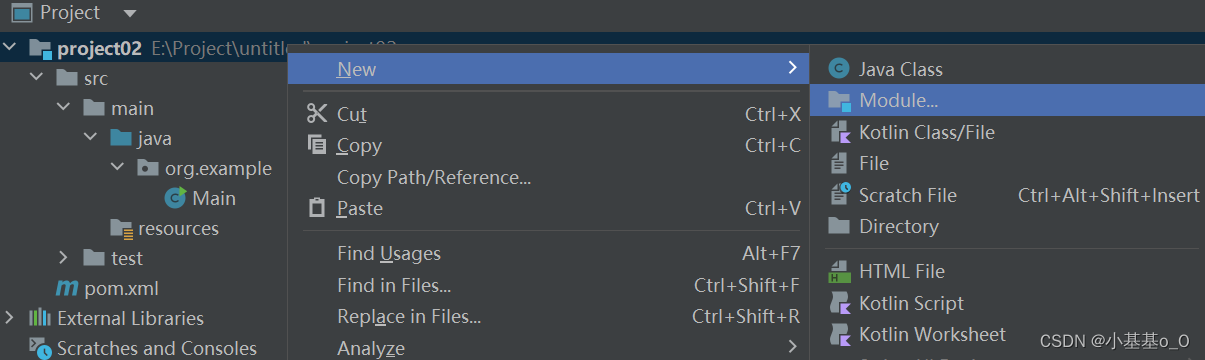 创建完Project后可以不创建Model,也可在Project下创建多个Model - Module创建完成后会自带