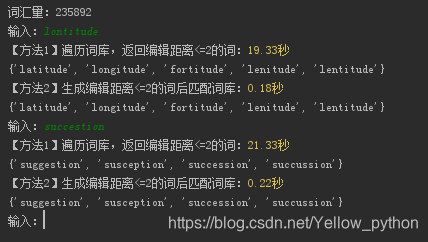 """【方法2】生成编辑距离<=2的词后匹配词库"""