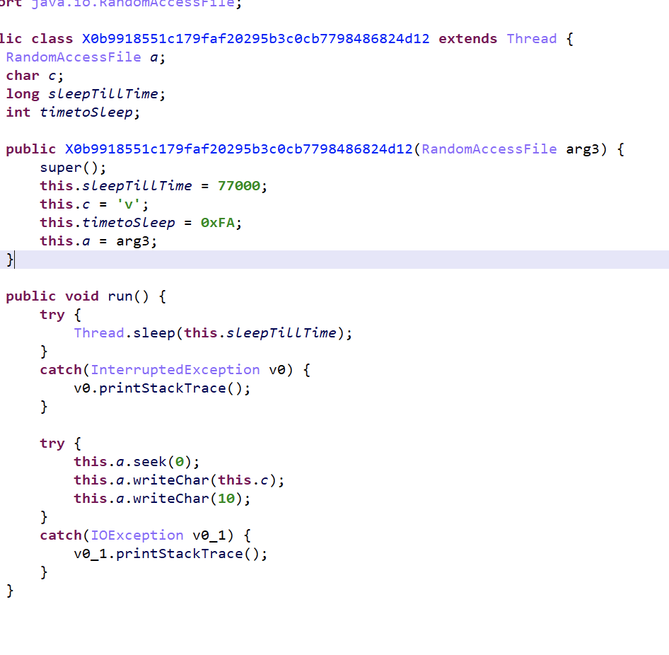 发现是新建了一个随机输入流的文件对象,然后新建了很多进程,往这个文件中去输入字符,不过里面是有时间限制的