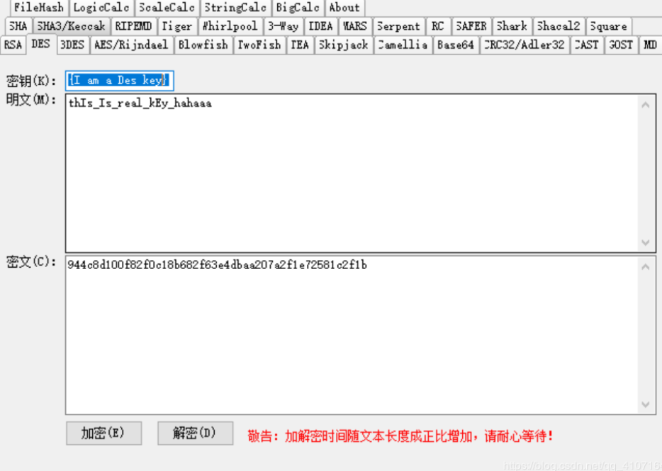 同时结合,那个控件是一大堆的字符串,很有可能是密文,拿去des,解密后,得到flag