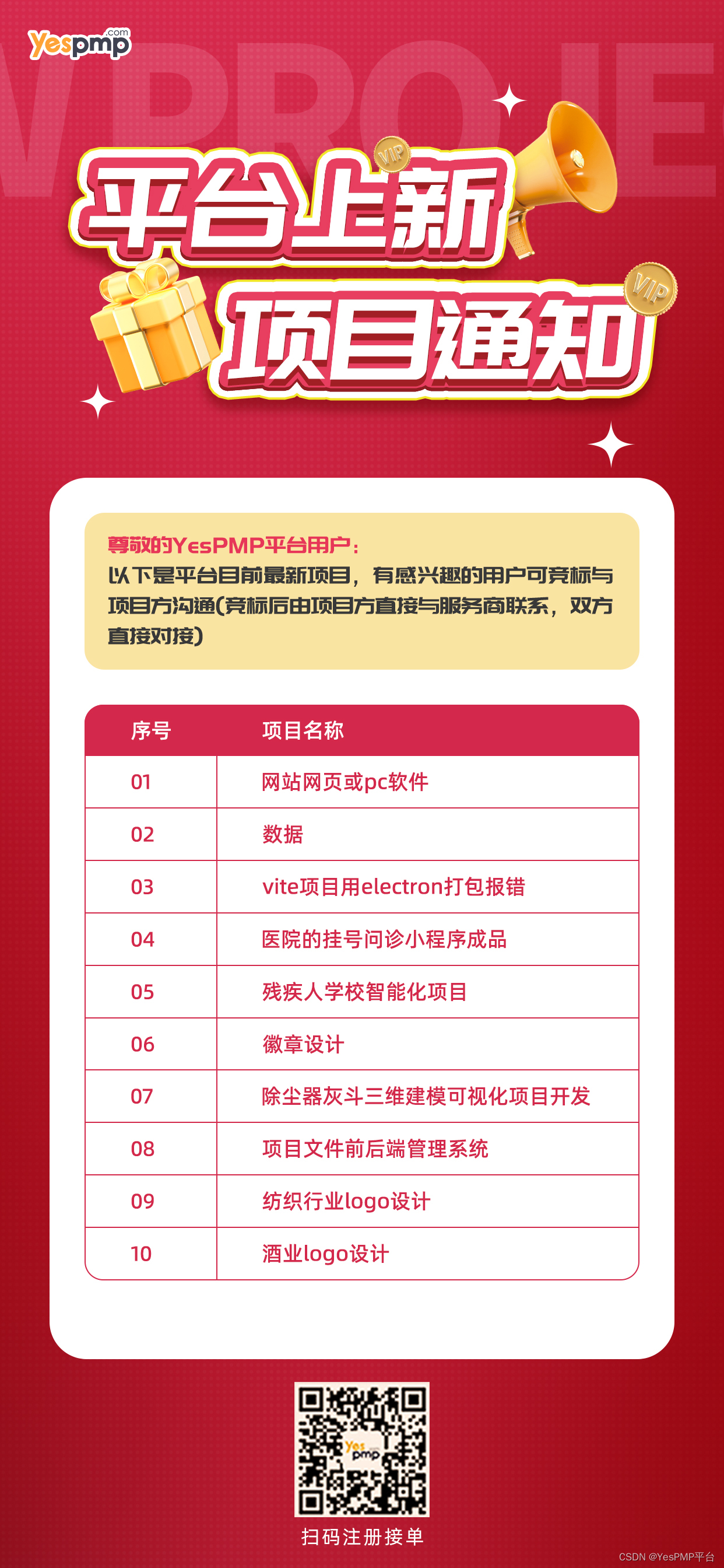 YesPMP平台目前最新项目,有感兴趣的用户,可查看项目参与竞标,免费接单,竞标后由项目方直接与服务商联系,双方直接对接。