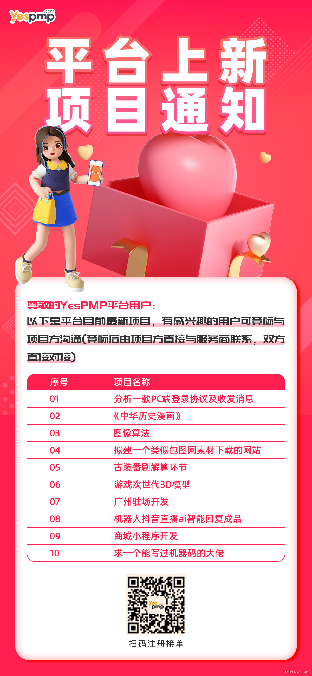 YesPMP众包平台5月13日最新项目,有感兴趣的用户查看项目接单,甲乙方无障碍沟通。