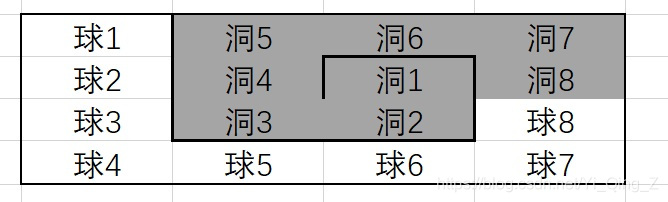 当一个小球进到对应的洞时,可以把该洞填平,即其他球可以滚过该洞。