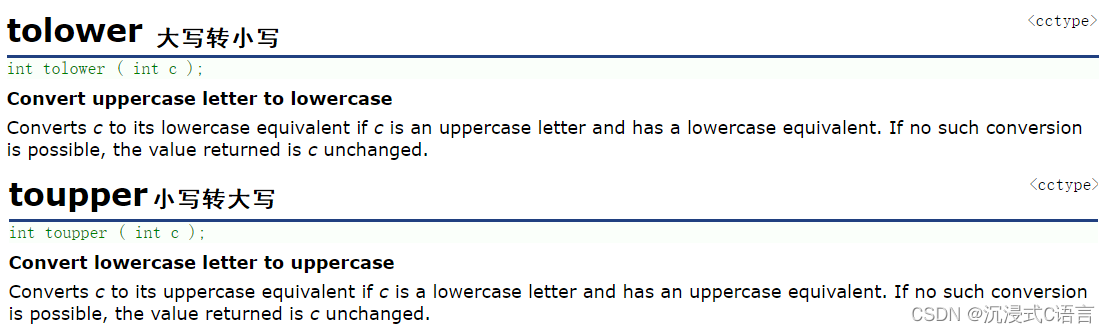 int toupper ( int c ); //将小写字母转化为大写字母注意:如果不能转换,将返回初始值。