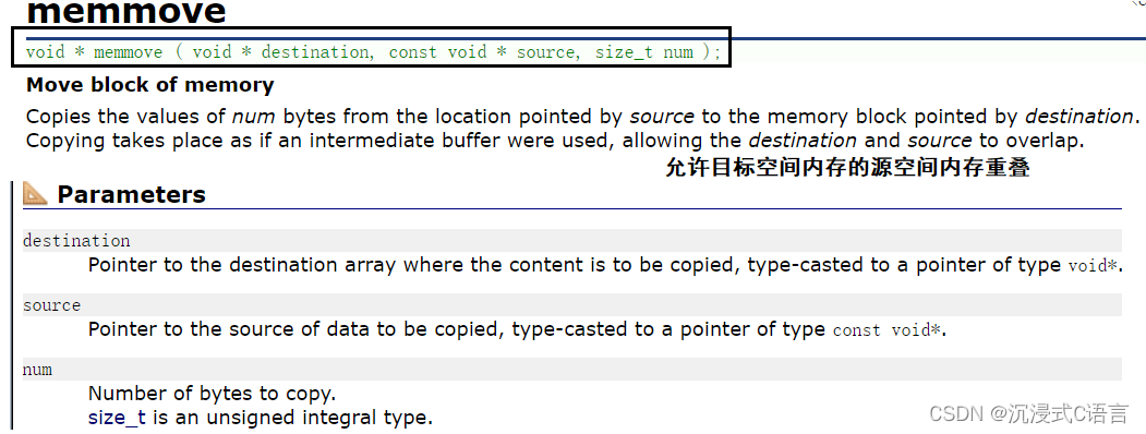 前面提到过memcpy是不能自己操作自己的,但是memmove可以操作自己,memmove函数的作用是进行内存移动: